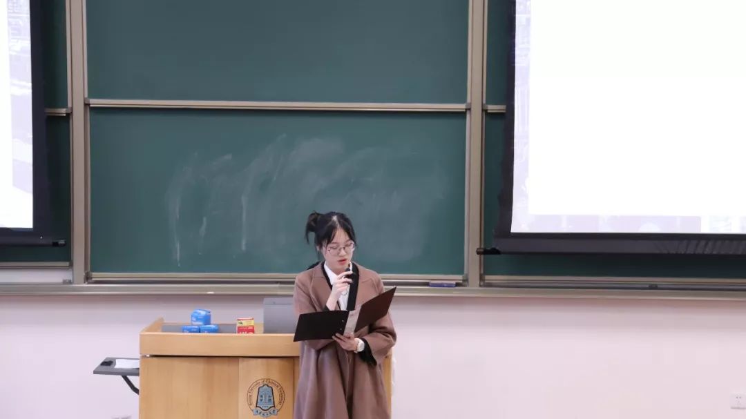 参赛学生代表蒋妍琦同学上台发言。蒋妍琦同学首先表达了对指导老师和学长学姐帮助的感谢,表示该活动使自己有了很多收获。这次比赛不仅使自己对未来发展有了更清楚的规划,而且对参赛同学的文案撰写等能力有了提高。
