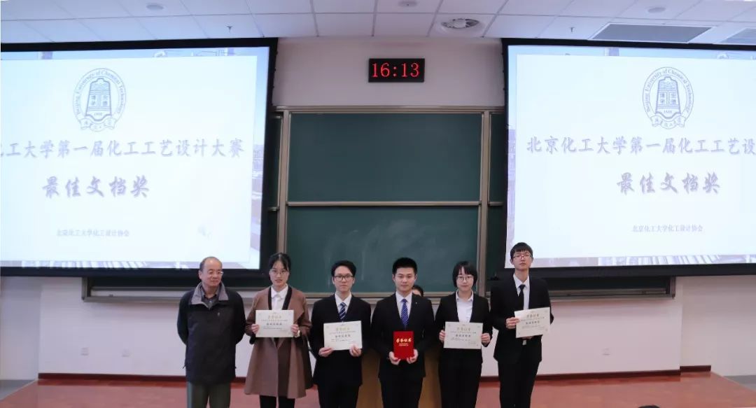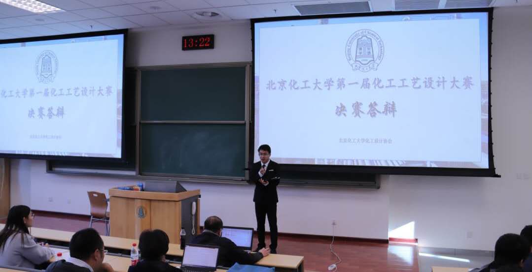 2018年11月27日,由化工设计协会主办的北京化工大学第一届化工工艺设计大赛决赛和颁奖典礼于主教学楼B阶103举办。经过三个星期的紧张角逐,六支队伍杀出重围,进入决赛。决赛由化学工程学院刘清雅教授、陆颖舟副教授、杜增智副教授担任评委老师,小组赛各组第三名的参赛队伍三位队长担任学生评委。