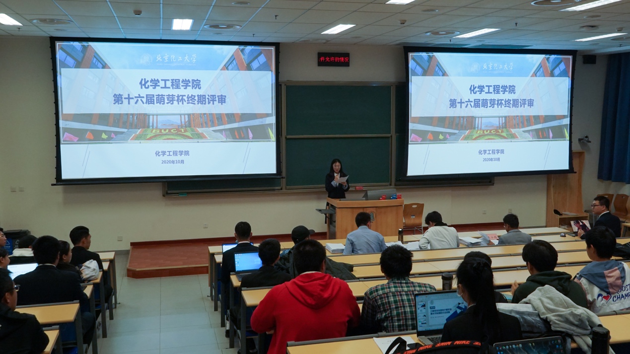 2020年10月20日晚,北京化工大学第十六届“萌芽杯”化学工程学院院级终极评审在主教B阶204和B阶304成功举办。本次答辩邀请了化学工程学院的张婷婷、朱小彪、孟祥桐、许昊翔四位老师,以及武威、严湖两位博士担任评委。
