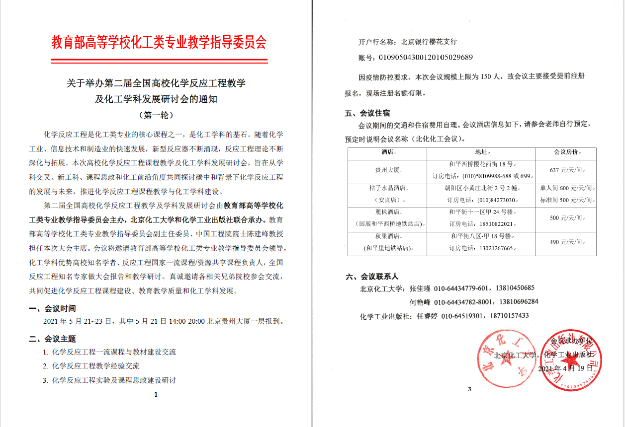 第二届全国高校化学反应工程教学及化工学科发展研讨会